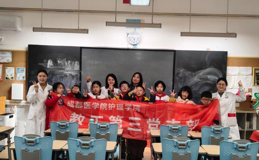 近日,护理学院教工第一党支部“强国行”团队携手教工第三党支部组建师生志愿者队伍,走进成都七中初中附属小学,以“扬急救之帆,护生命之航”为主题开展急救科普培训。活动聚焦心肺复苏、海姆立克急救法等高频实用急救技能,通过系统讲解与实操教学相结合的方式,让学生沉浸式学习急救知识。