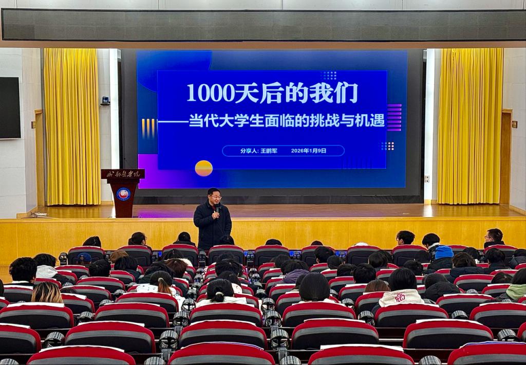 1月9日,由学生工作部(处)指导、生物科学与技术学院主办的“1000天后的我们——当代大学生面临的挑战与机遇”主题班会在学术报告厅举行。辅导员王鹏军与2025级全体学生共同探讨如何实现大学生的成长与发展。