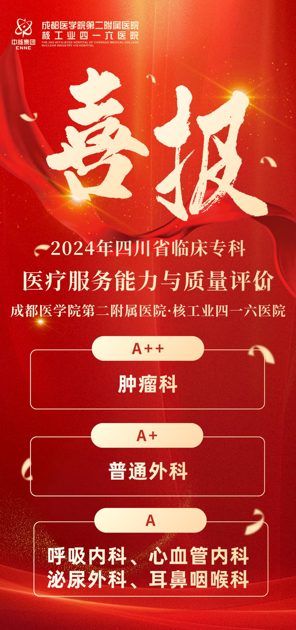根据近期发布的《2024年四川省医疗服务与质量报告》,全省三级医院临床专科医疗服务能力与质量综合评价结果揭晓。附二院在此次评价中多个临床专科荣登榜单,充分彰显了医院近年来的整体实力与卓越的专科建设水平。其中,肿瘤科在全省136家参评机构中荣获最高等级A++,普通外科在全省185家参评机构中荣获A+等级,心血管内科、呼吸内科、泌尿外科、耳鼻咽喉科在各自参评的百余家机构中均荣获A等级。