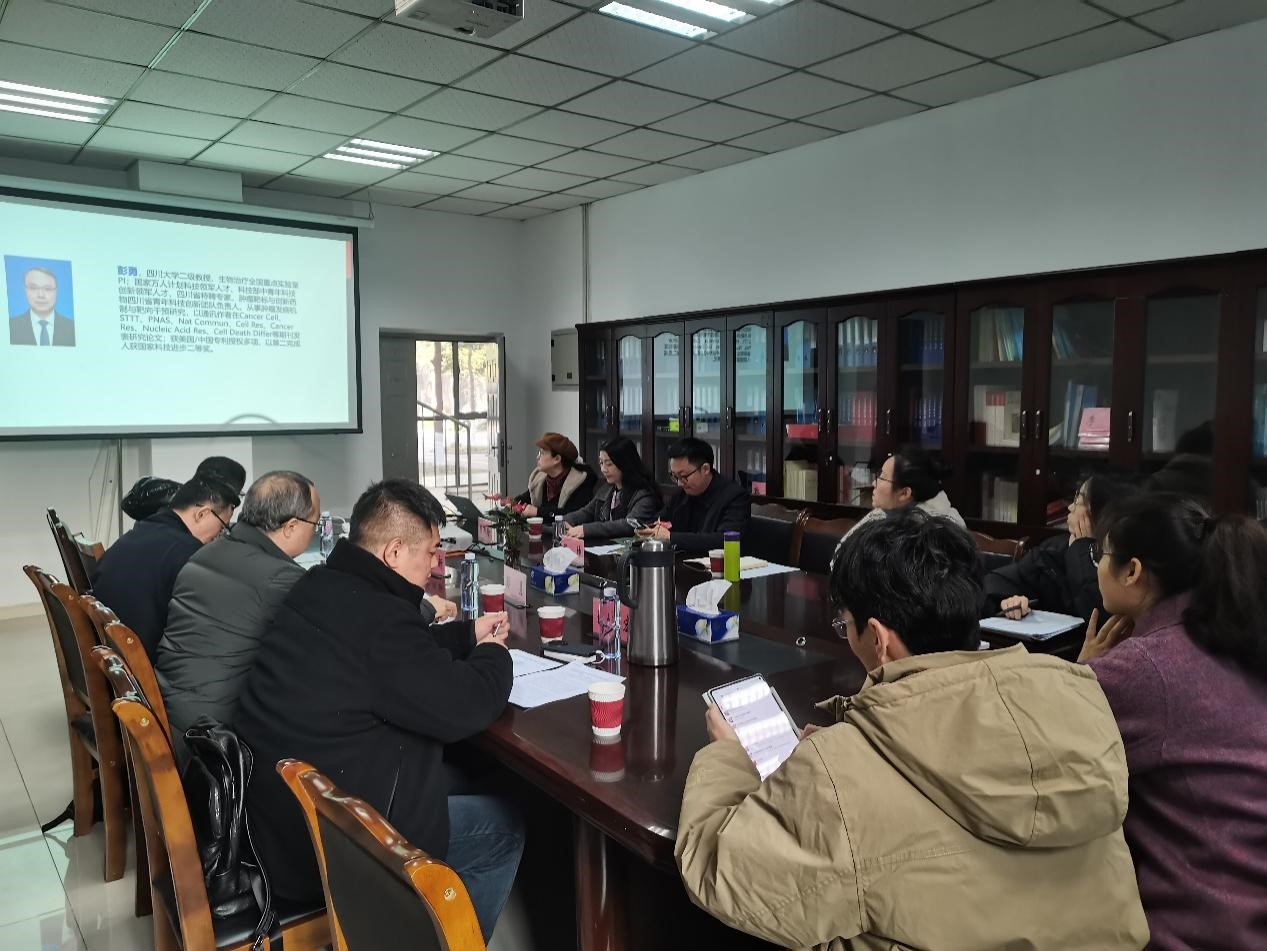 1月14日,生物科学与技术学院召开2026年度国家自然科学基金申报第二轮论证会。会议邀请四川大学彭勇教授、邓洪新教授、薛志宏教授及电子科技大学张坤教授组成专家指导团,为学院教师申报项目提供专业指导。论证会由学院学术委员会主任王兰教授主持,共7位教师参与项目汇报。