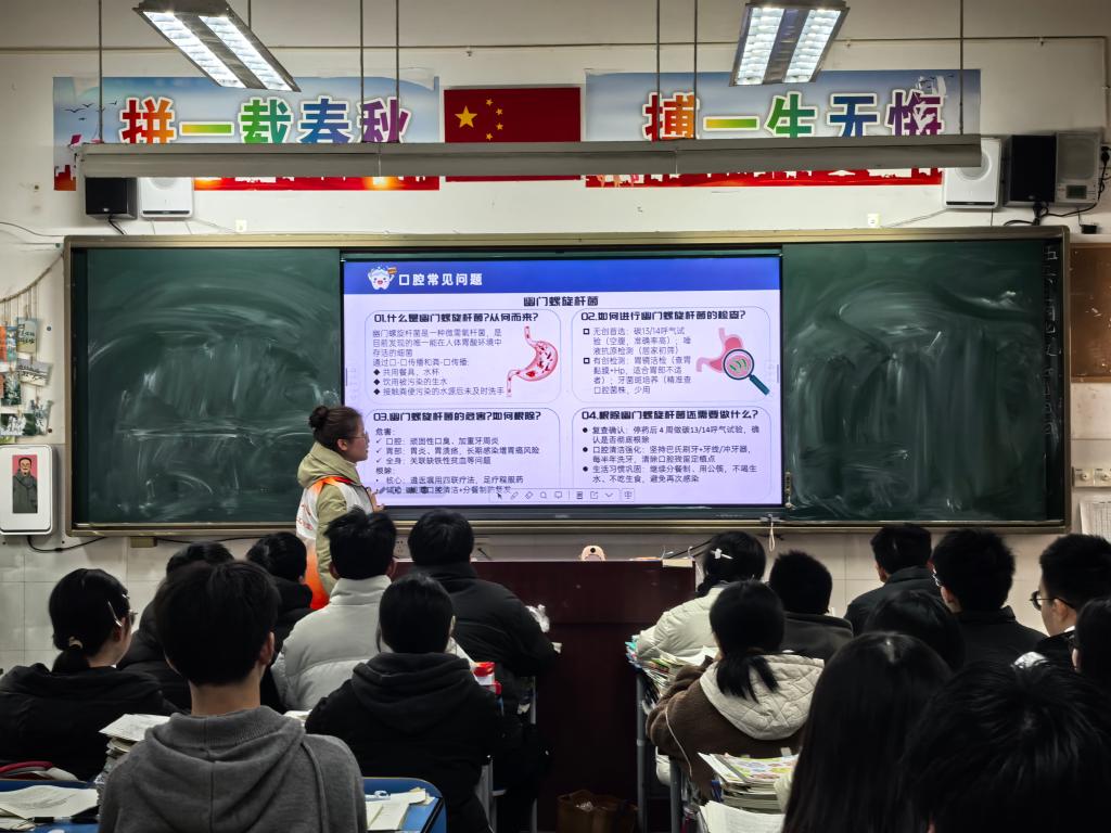 队员们系统讲解了口腔健康与全身健康的紧密联系,重点围绕牙菌斑的形成、危害与清洁方法,以及幽门螺旋杆菌的传播途径、症状表现、预防措施和规范治疗等内容开展科普宣讲,讲解深入浅出。