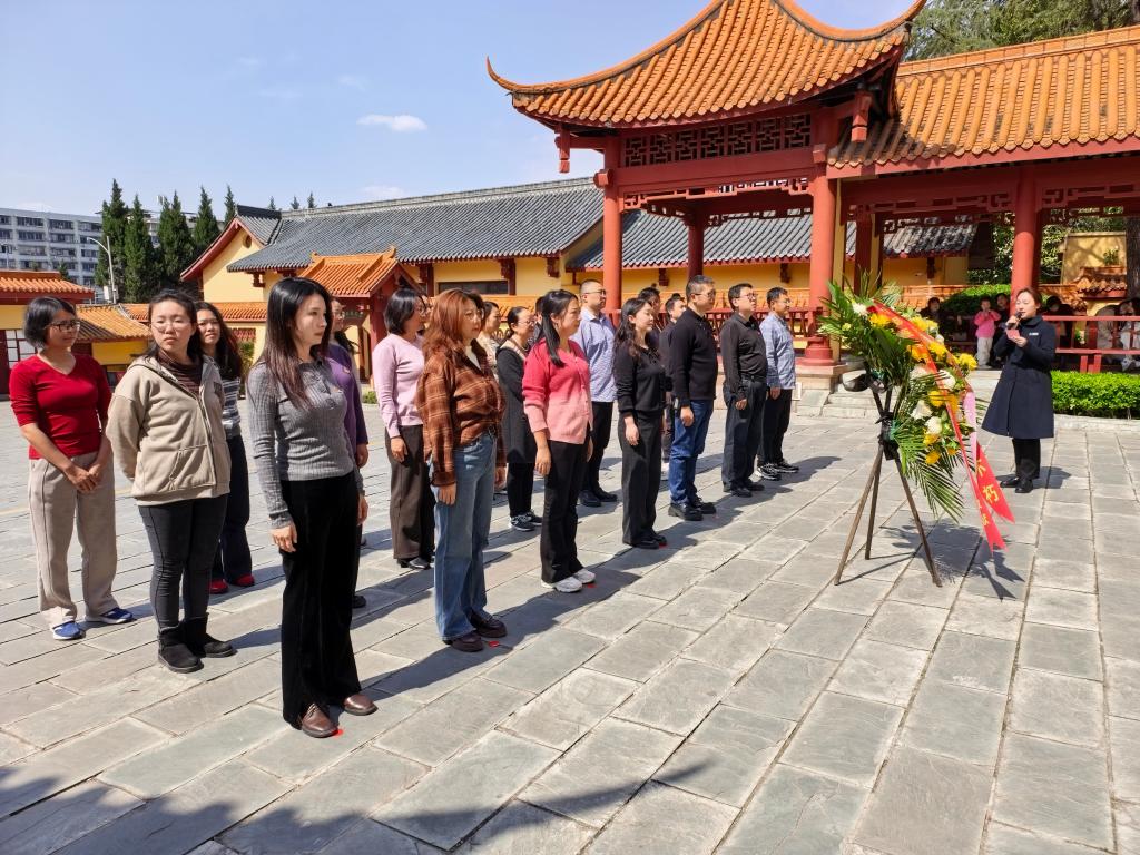 上午10点40分,全体人员从学校统一出发。来到纪念馆后,大家肃立纪念碑前、敬献花篮、整理缎带,全体党员鞠躬致敬、重温入党誓词,誓言铿锵,初心如磐。