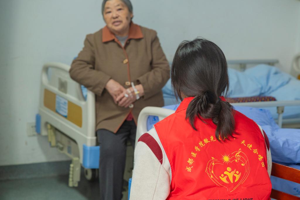 下午,团队转至成都医学院第一附属医院,为住院患者及医护人员演唱经典歌曲,温暖病房。之后,志愿者分组深入病房,与患者和医护人员交流,倾听他们的心声,传递关怀与鼓励。