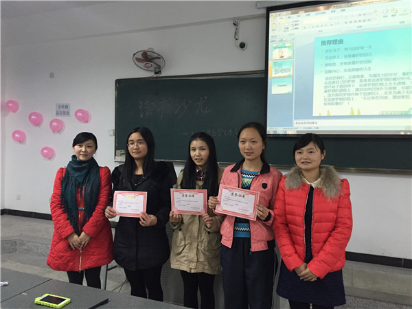 通过前期面向全系选拔,共有5名同学获得此次活动的登台机会。同学们需利用5至10分钟的时间,通过ppt、视频及个人现场发挥向在场观众推荐各类好书。比赛中,从展示田园风情的经典名著《傲慢与偏见》到以独特视角剖析人生哲理的《小王子》,参赛选手的分享方式各异,极具个人特色。既有细致描绘又有深情解读,既讲解书本内容又通过书本分享了自己的人生思考。一本本经典著作深层次的呈现在观众面前,其丰富高雅的文化精华让人忍不住安静聆听、用心咀嚼。比赛过程简单质朴,却回归传统文化本身,让人找到了读书最初的乐趣。最终2012级学生党员刘丽波因其绘声绘色的讲解和超越寻常的思考收获此次比赛桂冠。