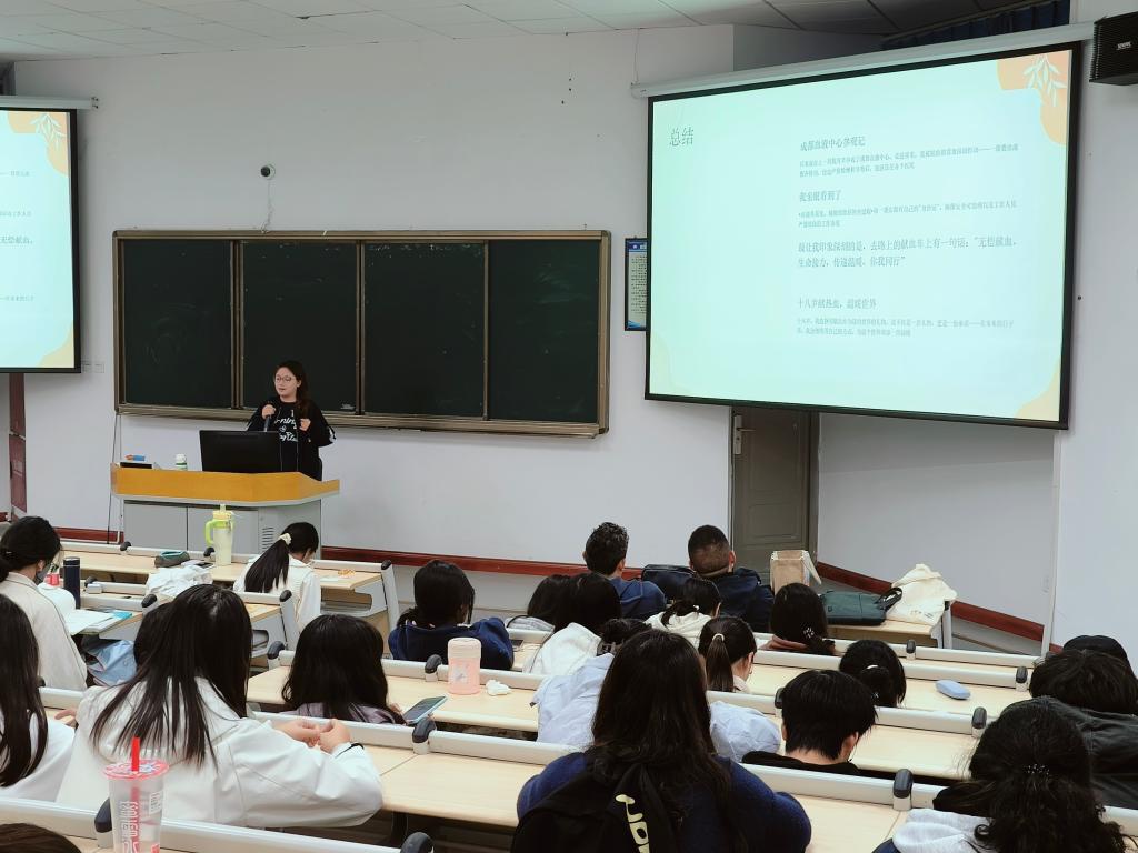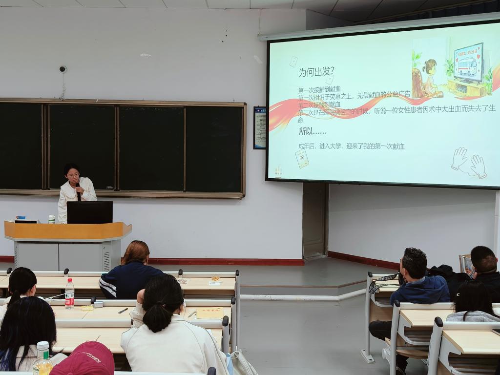 两位有过献血经历的同学分享了自己的献血故事和心路历程。她们讲述了从最初的好奇或紧张,到献血过程中的温暖体验,再到得知自己的血液可能挽救他人生命时的自豪与感动。这些真实而鲜活的故事深深打动了在场的每一位同学,让无偿献血从抽象的概念变成了具体而温暖的情感连接。