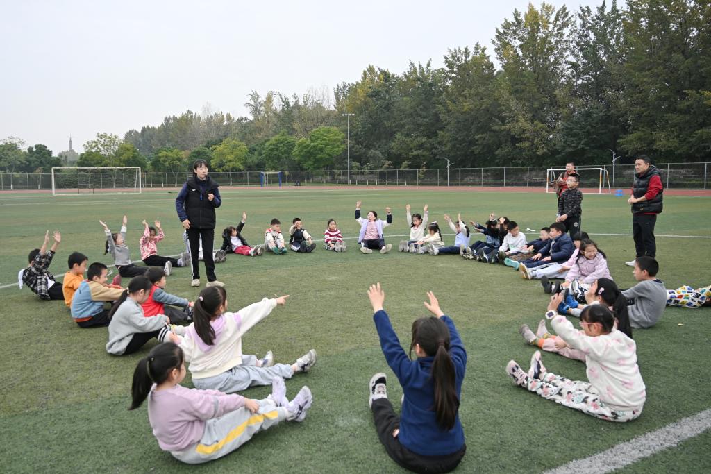 托管班课程非常丰富,上午,孩子们在校园足球场进行跑步、跳绳、趣味游戏和足球基础训练,尽情释放活力。下午的活动则更为多元,有故事分享与趣味手工,还有退休老教师的音乐课。“孩子在这里我们很安心,课程丰富又有营养,很好地解决了我们的后顾之忧。”一位青年教师说。
