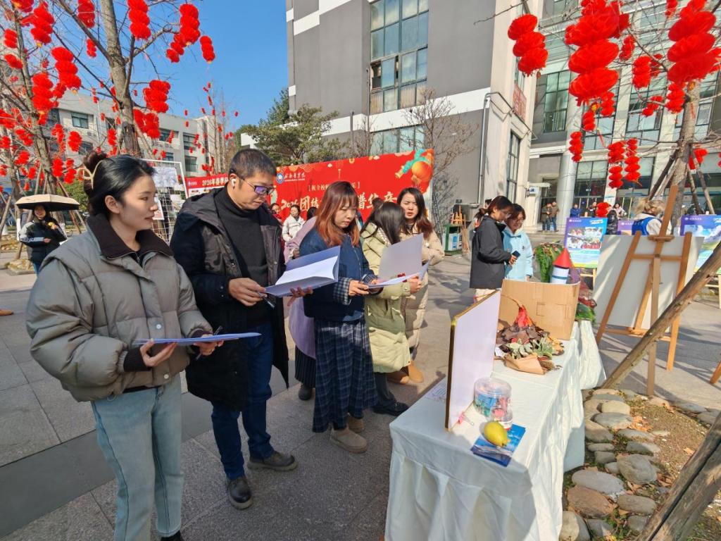 展览现场气氛热烈,师生流连于各展位之间。同学们利用废旧纸箱、回收塑料、落叶枯枝等日常及自然材料,通过精巧的构思和手工,创作出兼具艺术美感与环保理念的装饰品、雕塑与实用器物。每一件作品都诉说着独特的创意故事,引得观众频频称赞、拍照留念。评委们围绕作品的创意性、艺术性、传播力与完成度等方面,进行了细致观摩、认真讨论与公正评审。