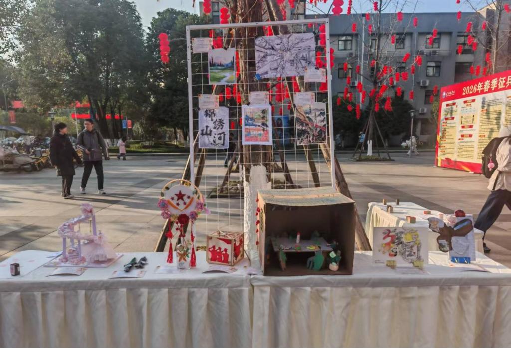 近日,由校团委主办、生物科学与技术学院团委承办的成都医学院第十届大学生艺术节设计大赛决赛评选与作品展示活动在校园食堂门口举行。现场展出了众多充满巧思的学生创作,吸引了大量师生驻足欣赏。党委书记来建、副校长王计生等校领导亲临现场,逐一观看了决赛作品,并与参赛学生进行了亲切交流。领导们对大赛在激发创意、美化校园、推进文化建设方面的积极作用给予了高度评价,并鼓励同学们继续发扬创新精神和动手能力,将艺术创意融入专业学习与日常生活。