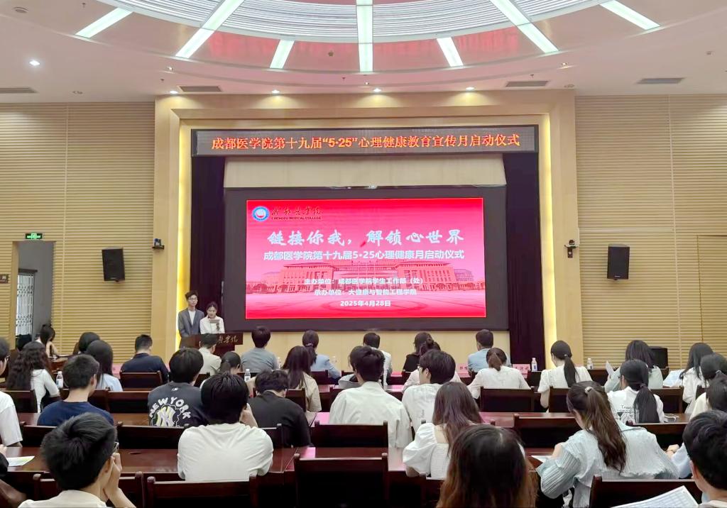 4月28日,成都医学院第十九届“5·25”心理健康教育宣传月正式启动。活动由学生工作部(处)主办,大健康与智能工程学院承办。学校党委常委、副校长王计生,党委常委、党委宣传部、党委统战部部长陈喆出席启动仪式,学生工作部(处)、校团委、各学院相关领导,以及心理工作站老师、辅导员和学生代表参加启动仪式。