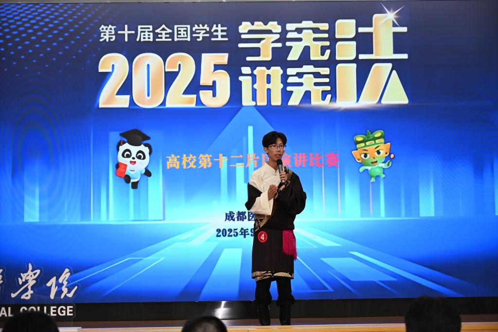 为认真贯彻落实习近平总书记关于宪法学习宣传教育的系列重要指示精神,在青少年学生中普及宪法知识、弘扬宪法精神、树立宪法权威,引导青少年学生自觉成为宪法的忠实崇尚者、自觉遵守者、坚定捍卫者,9月25日,第十届全国学生“学宪法讲宪法”四川赛区高校第十二片区演讲比赛在成都医学院新都校区学术报告厅举行。经过激烈而精彩的角逐,最终来自四川音乐学院的罗雨嫣与四川工程职业技术大学的罗勋熠两位同学表现突出,成功晋级省级决赛。