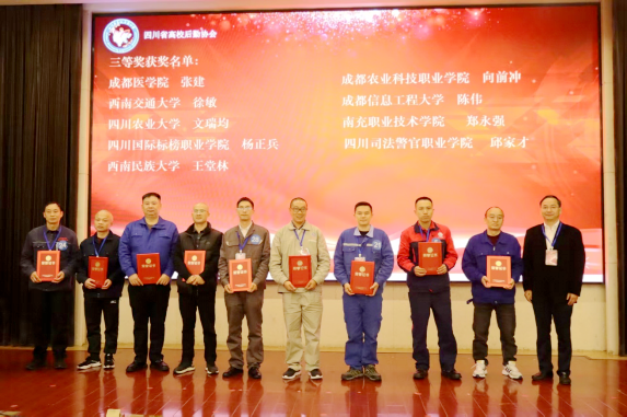 11月1日,由四川省高校后勤协会主办、西南交通大学牵头承办的四川省高校后勤物业与绿化员工技能培训暨技能大赛在西南交通大学峨眉山校区举行。我校后勤员工张健凭借扎实的专业功底和出色的现场发挥,在电工技术项目中荣获三等奖,展现了我校后勤队伍良好的专业素养与服务能力。