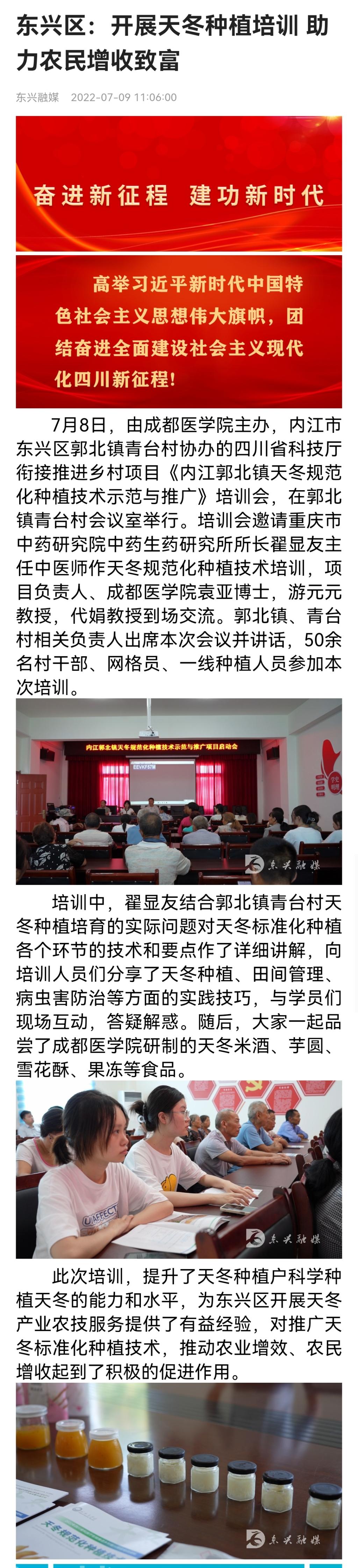 此次培训,提升了天冬种植户科学种植天冬的能力和水平,为东兴区开展天冬产业农技服务提供了有益经验,对推广天冬标准化种植技术,推动农业增效、农民增收起到了积极的促进作用。