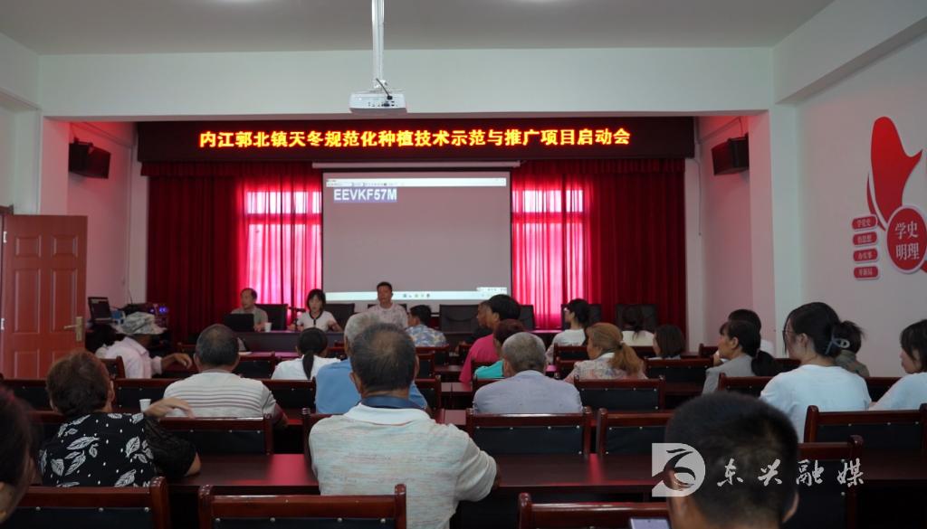 7月8日,由成都医学院主办,内江市东兴区郭北镇青台村协办的四川省科技厅衔接推进乡村项目《内江郭北镇天冬规范化种植技术示范与推广》培训会,在郭北镇青台村会议室举行。培训会邀请重庆市中药研究院中药生药研究所所长翟显友主任中医师作天冬规范化种植技术培训,项目负责人、成都医学院袁亚博士,游元元教授,代娟教授到场交流。郭北镇、青台村相关负责人出席本次会议并讲话,50余名村干部、网格员、一线种植人员参加本次培训。