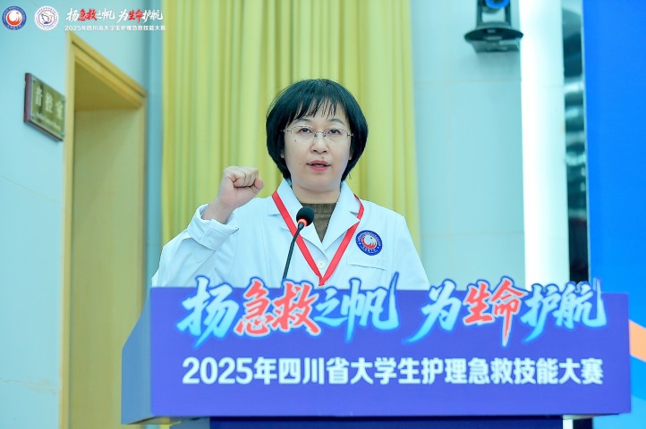 教育部高等学校护理学类专业教学指导委员会副主任委员、大连大学护理学院安力彬教授,天津医科大学护理学院副院长、天津医科大学总医院护理督导中心主任林梅教授,担任大赛裁判长。第44届南丁格尔奖章获得者、四川大学华西医院成翼娟教授,担任大赛仲裁。成都医学院校领导参加了开闭幕式,希望参赛选手在比赛中锤炼专业能力、在协作中传递医学温度,赛出水平、赛出风格,将大赛收获转化为服务临床、推动护理事业长远发展的核心能力,成为“眼中有光、手上有技、心中有责”的新生力量,推动“人人学急救、急救为人人”理念的普及与深化,为健康中国建设践行青春使命。