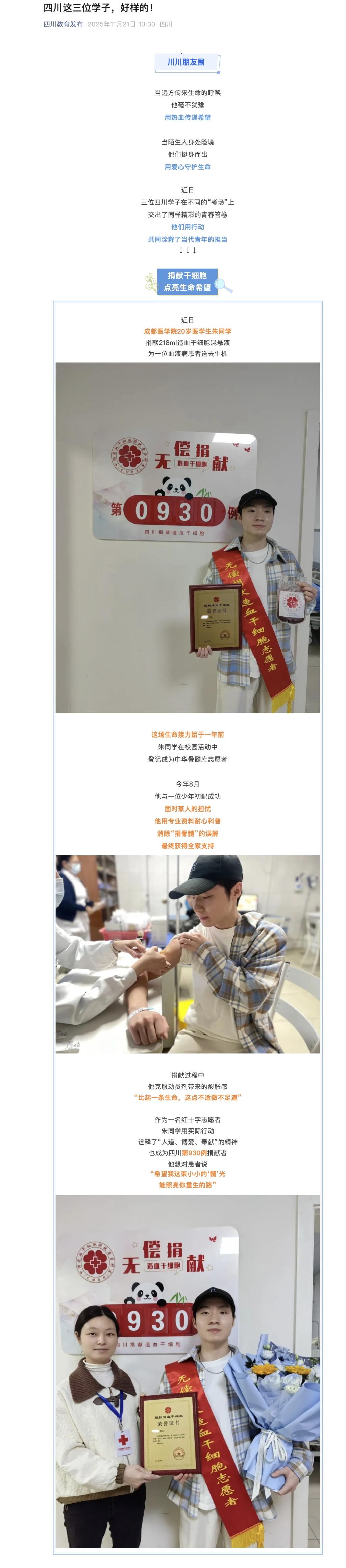 四川教育发布微信公众号:四川这三位学子,好样的!