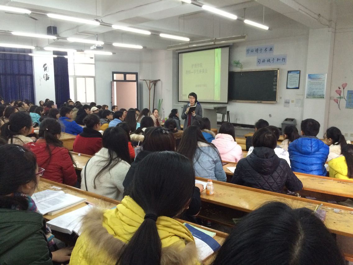 2016年1月6日,护理学院在天回校区314教室召开师生座谈会。护理学院院长赵小玉、副院长曾兢、党委副书记张泽华、各教研室主任和教师代表、全体辅导员老师及学生骨干参加了会议。