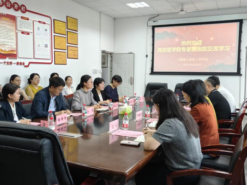 9月28日下午,西安医学院卫生管理学院院长韩文霞一行15人来大健康与智能工程学院交流。大健康与智能工程学院相关领导,健管教研室、医信教研室、实验教学中心负责人及相关职能部门、教师代表参加。