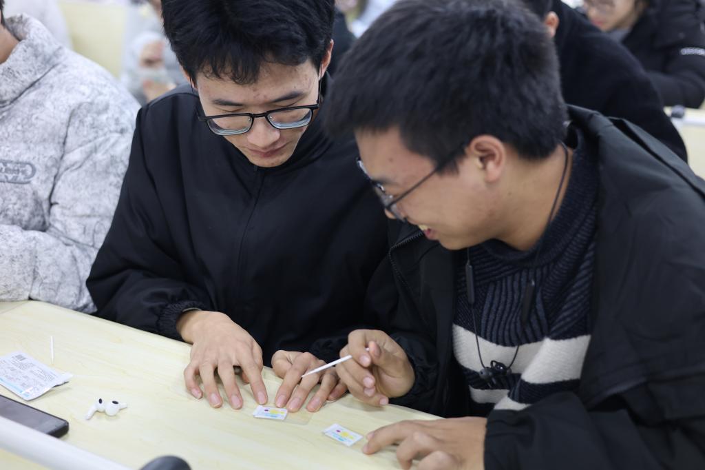 为增强知识的实用性与体验感,活动设置了牙菌斑显色检测和幽门螺杆菌唾液试纸快速检测两项实操环节。同学们通过显色液直观看到牙菌斑残留,及时调整刷牙方法;部分同学自愿参与唾液检测,了解感染风险,并学习分餐、餐具消毒等预防措施。