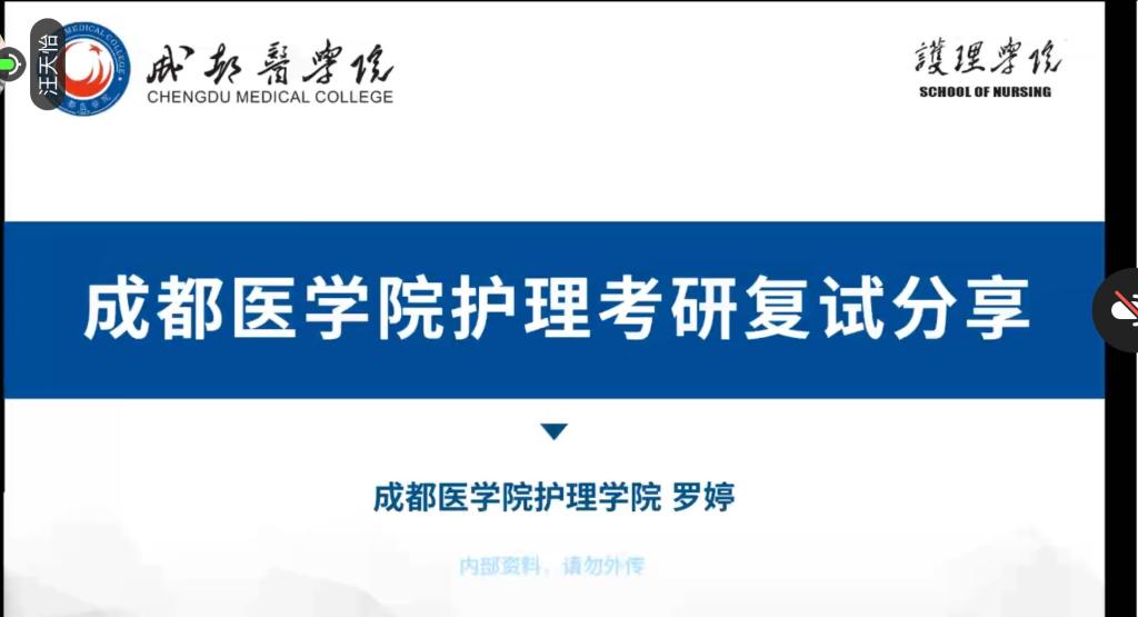 分享会上,现就读于四川大学华西医院护理专硕的罗淳、赵海旭、普铁木乃,详细介绍了川大华西的复试流程,重点分享了护理专业知识问答、临床技能操作、英语口语面试等关键环节的应对技巧。成都医学院护理专硕研究生罗婷全面细致地讲解了我校护理专业复试整体流程、考核要点与注意事项,同时围绕复试简历制作、个人优势提炼、材料准备等实用内容展开详细指导。杜正铭系统讲解了调剂信息的搜集渠道、调剂技巧、调剂系统操作流程与注意事项。