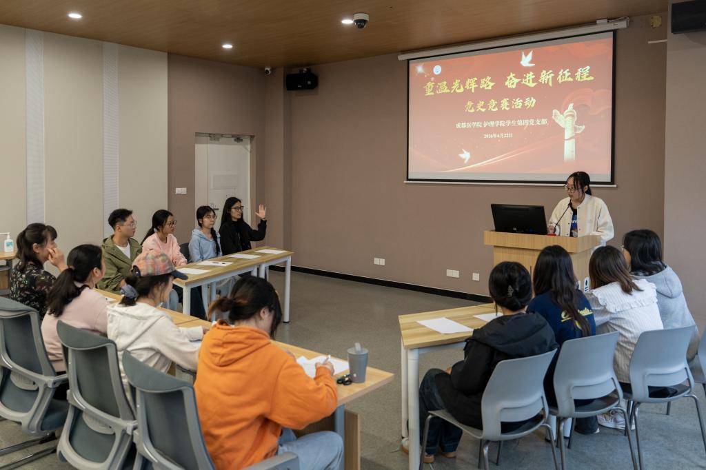 为落实党史学习教育常态化长效化要求,引导学生从党史知识中汲取奋进力量,4月22日,护理学院学生第四党支部在A7实验楼A305示教室举办了党史知识竞赛,党支部入党积极分子以班级为单位组队参赛。