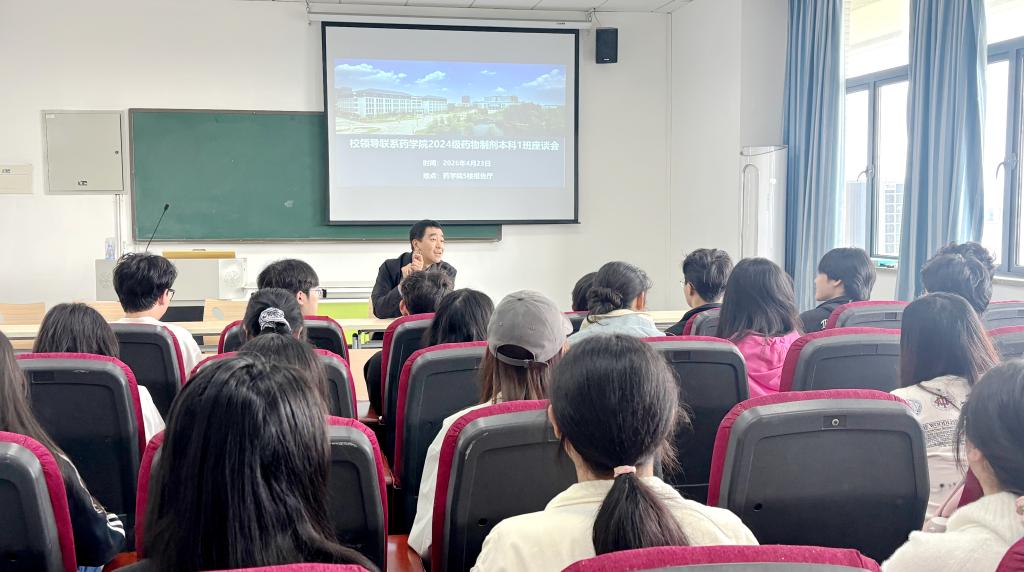 4月23日,学校副校长张涛深入所联系班级——药学院2024级药物制剂本科1班,与同学们展开座谈交流,深入了解学生思想动态、学业进展和生活状况,为大家现场答疑、指点成长。