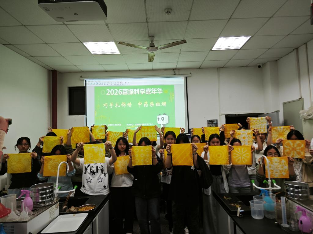4月23日,药学院“引航”青少年中医药文化科普基地举办“巧手扎锦绣 中药染斑斓”第五期活动,以中药“栀子”为染材,带领同学们感受中药染色的独特魅力,传承传统技艺。