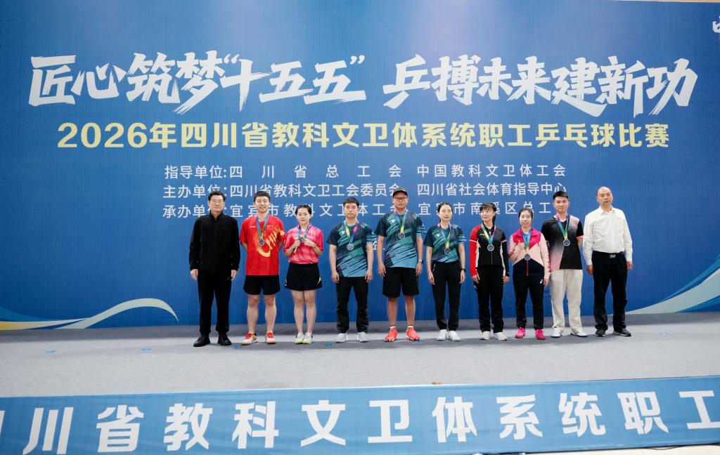 4月16日至17日,“中国梦·劳动美——匠心筑梦'十五五'乒搏未来建新功”2026年首届四川省教科文卫体系统职工乒乓球比赛在宜宾市南溪区成功举办。我校工会选派郭晨光、杨奇伟两名教工代表学校参赛,其中,郭晨光老师荣获青年男子组单打亚军。